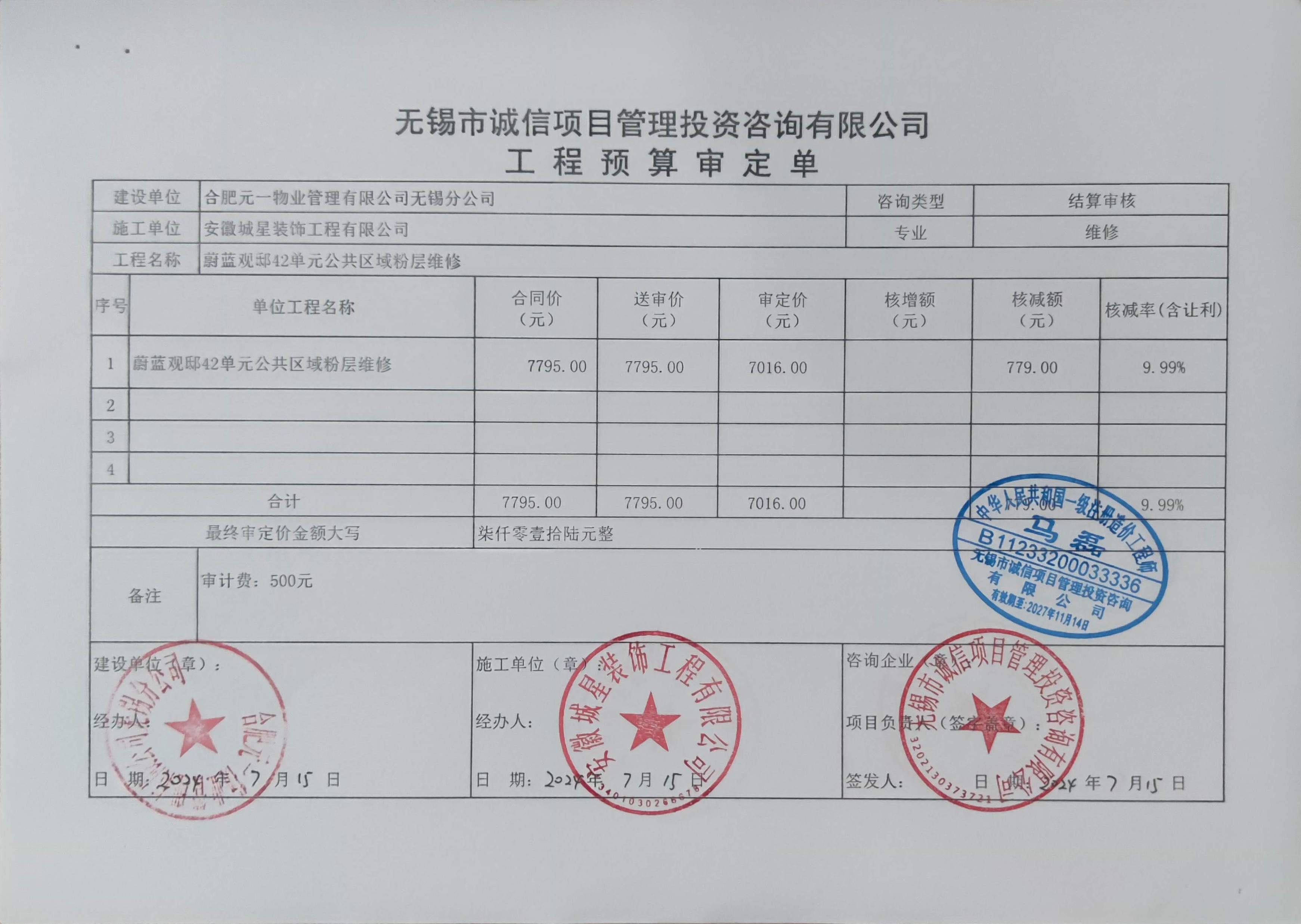 审价报告(审价建议)