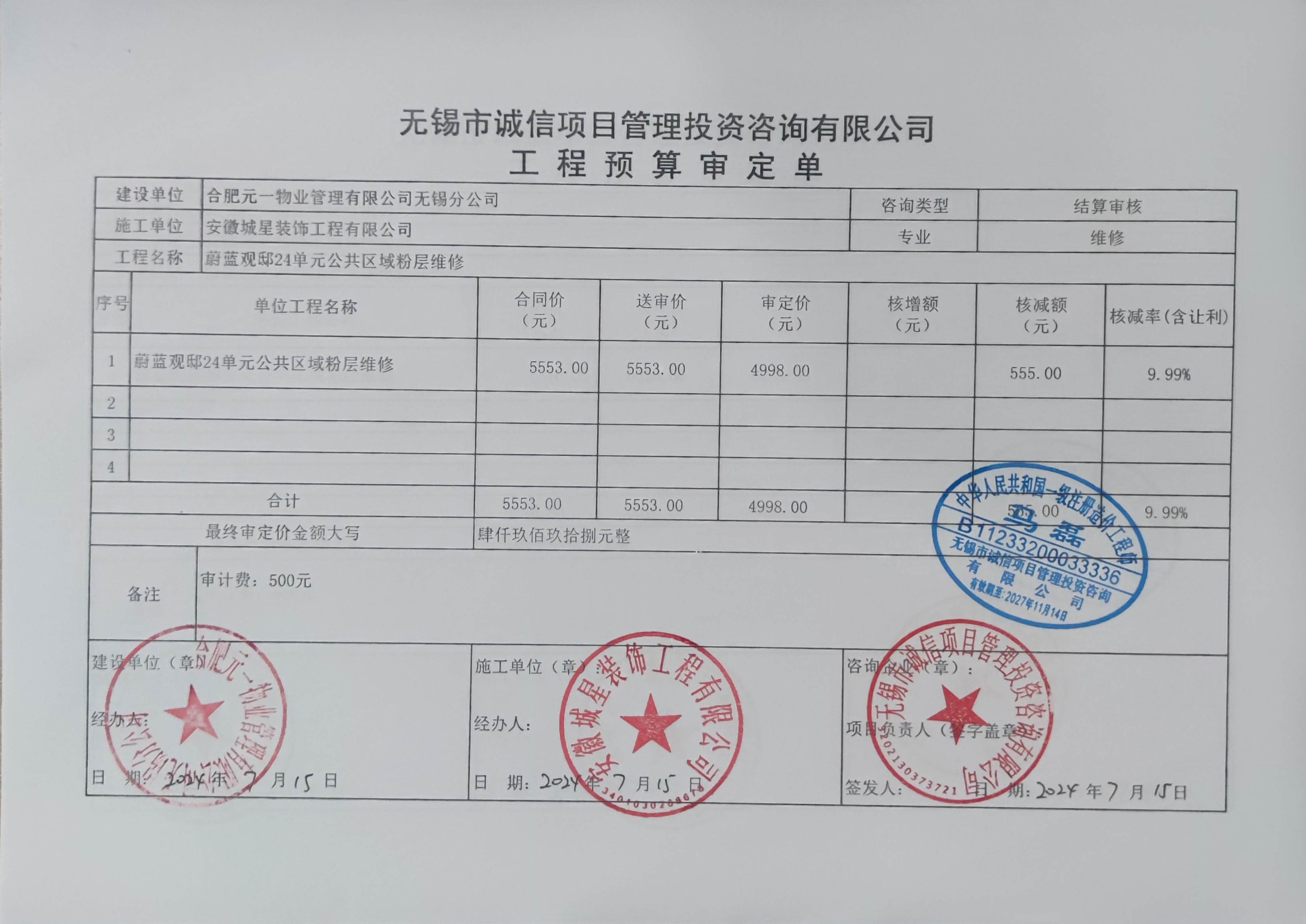 审价报告(审价建议)